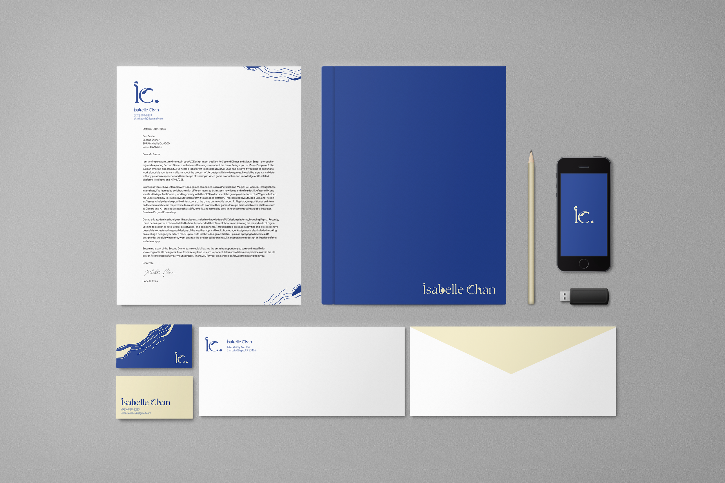 This was a project for GRC 318: Typography. Over the course of 3 weeks, I built up my own personal brand identity. I created a logo for myself and designed layouts for a cover letter, envelope, and business card.
